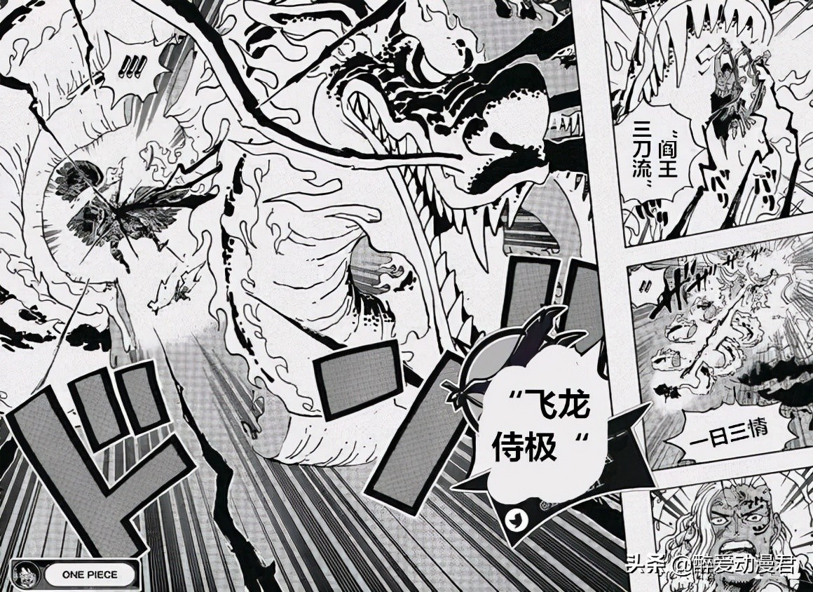 面对烬的火龙皇,索隆直接冲了过去,然后发出新的大招“阎王三刀流·一日三情”一招砍断了烬发出的火龙皇,直接给予烬致命一击,还砍断了烬的一只翅膀。
