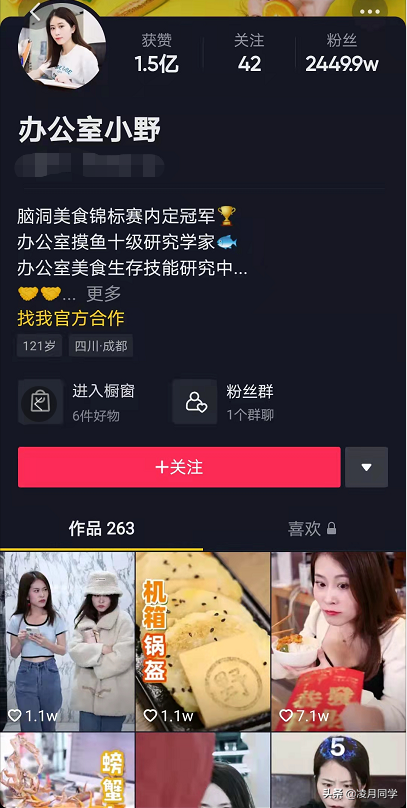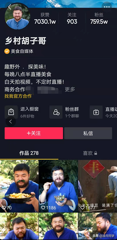 她就是一个在办公室利用生活中的一些简单的东西做美食的达人。她的视频中你可以看到用电熨斗去制作烤冷面、用夹发板自制爆米花。打破了你对办公室的认知,把美食搬进办公室。让粉丝耳目一新。同样的还有@乡村胡子哥