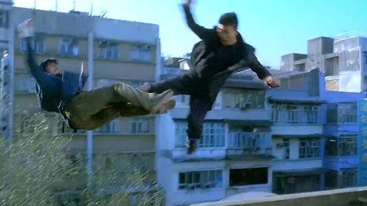 有一场运送桶装水的车被炸毁,水花四溅,人群四散奔逃的戏,刘青云饰演“朱华标”警司,按陈木胜要求在台阶上跑上跑下,又追疑犯追过一整条街。最后一场戏,刘青云单挑京剧武生出身的于荣光,打得不比李连杰差。
