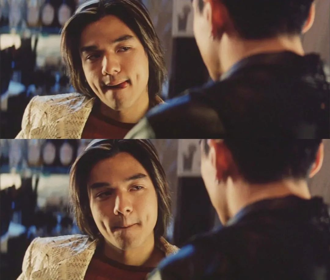 当年的吴彦祖套着皮西装,露着巧克力色的胸肌、腹肌,扣子就从来没扣上,荷尔蒙的气息完全喷洒出来。