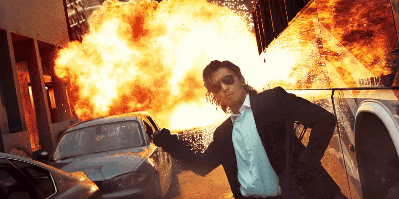 当时他坚持要在中国香港商业中心地带的中环实地拍摄各种大型爆破镜头,最终获得了香港开埠以来破天荒的拍摄许可证,封锁了中环的三条主要道路拍摄这场令人叹为观止的爆炸场面。