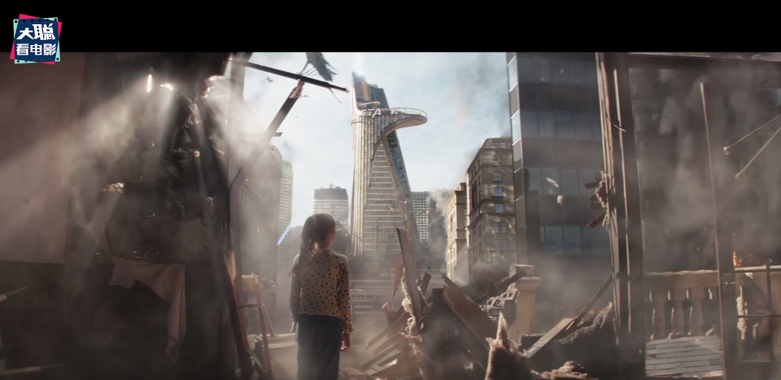 之后就是虫洞开启,齐塔瑞入侵,这里用长镜头调度,让我们再次领略了凯特“普通”家里的格局,她的家被炸出一个窟窿,正对面就是史塔克工业的复联大厦,凯特这时看到了鹰眼正在和齐塔瑞军队干架,从此以后被鹰眼这位毫无存在感的超级英雄深深吸引,变身小迷妹。