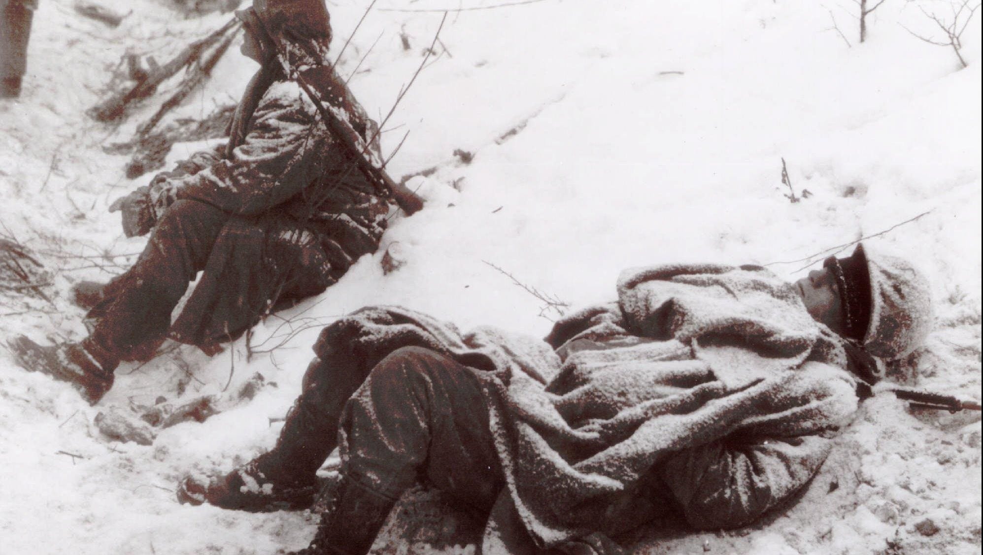 虽然有严寒和哨兵的双重保险,可麦克劳斯基仍旧不放心,他每过15分钟就要呼叫各个掩体放哨的士兵,一是查岗,二是随时了解阵地的情况。