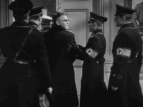 虽然杜拉先生如此机智,他的朋友们并不知情。这时,剧团里一众化妆成纳粹的演员来营救杜拉了。