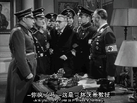 随后,杜拉再度华丽变身,装扮成教授的样子去纳粹酒店接女主。