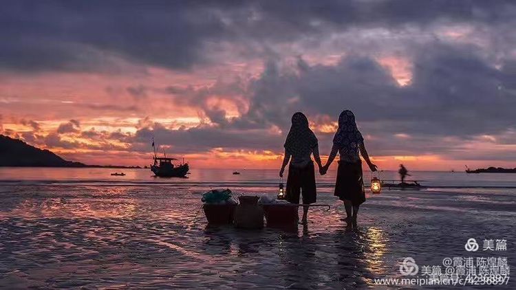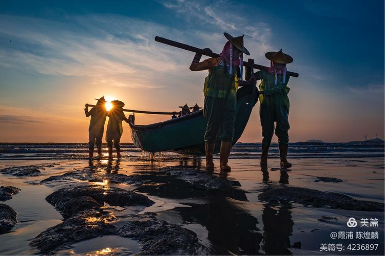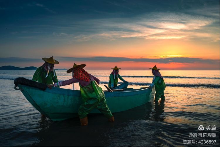 no5:早上四点二十出发小岞海边拍摄日出,渔灯火、惠安女抬渔船,织网劳作场景。