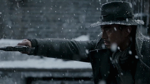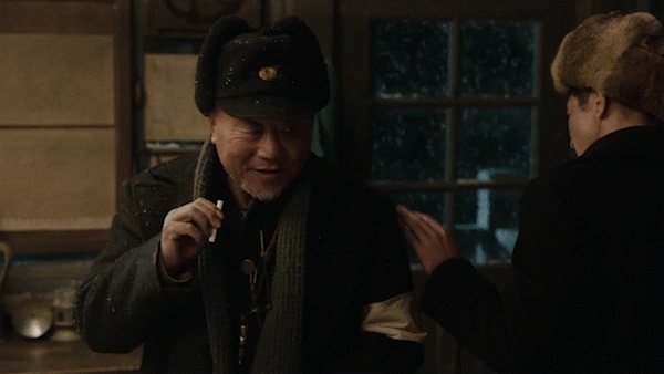 《铁道英雄》一开场,乔装成日本人的张涵予用日本军帽挡住了大半个面容,但是熟悉低沉的嗓音,瞬间就抓住了观众,是张涵予没跑了。接下里的文戏武戏,张涵予扮演的游击队队长老洪占据了很大篇幅,获得过多项影帝的他在文戏上不会失分,我反而担心1963年出生的张涵予拍动作段落会力不从心,没想到常年有腰伤的张涵予几乎每段打戏都是亲自上场。张涵予扮演的游击队长老洪牺牲的时候才32岁,常与火车打交道,练就了飞登火车的本领,人称“飞毛腿”。