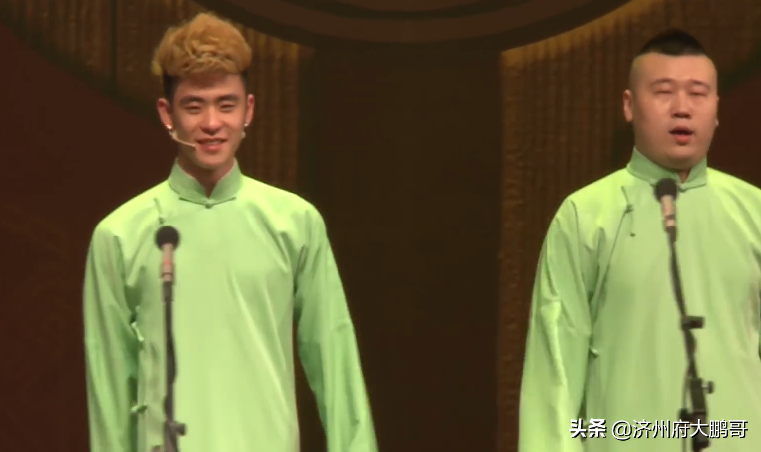 当时的郭麒麟跟张云雷都还是黄毛小将,跟阎鹤祥都是紫色大褂;岳云鹏孙越是灰色大褂;高峰栾云平是紫色大褂;郭德纲于谦满身刺绣大褂。