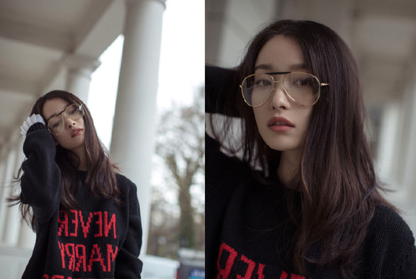 反而是这样的细框眼镜会比较适合。细细的边框会显得更加轻盈,也更能符合这类姐妹可爱的气质。