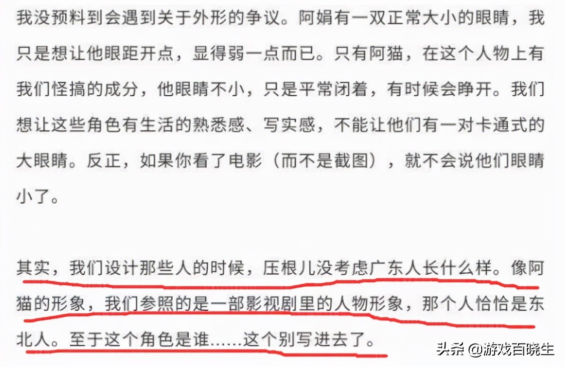 变成了“我们是照着广东当地人的样子画的,你觉得不像或者很丑是因为你没关掉美颜滤镜,照照镜子就知道了”的扭曲言论。