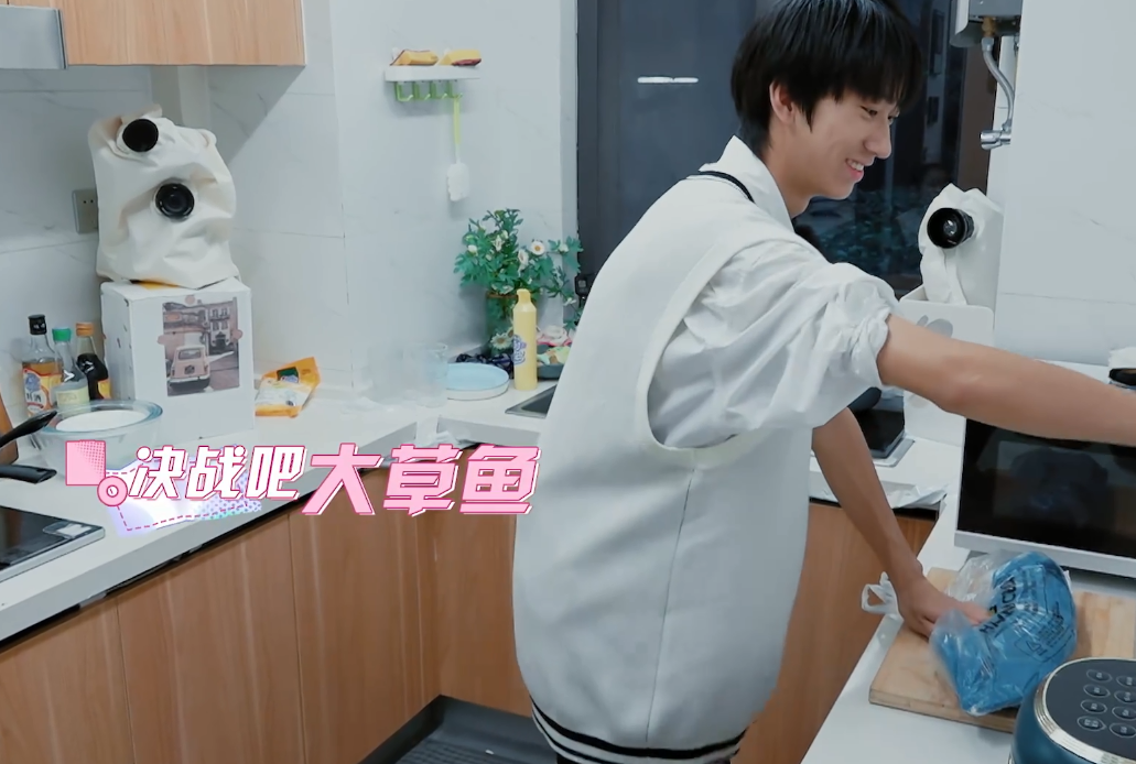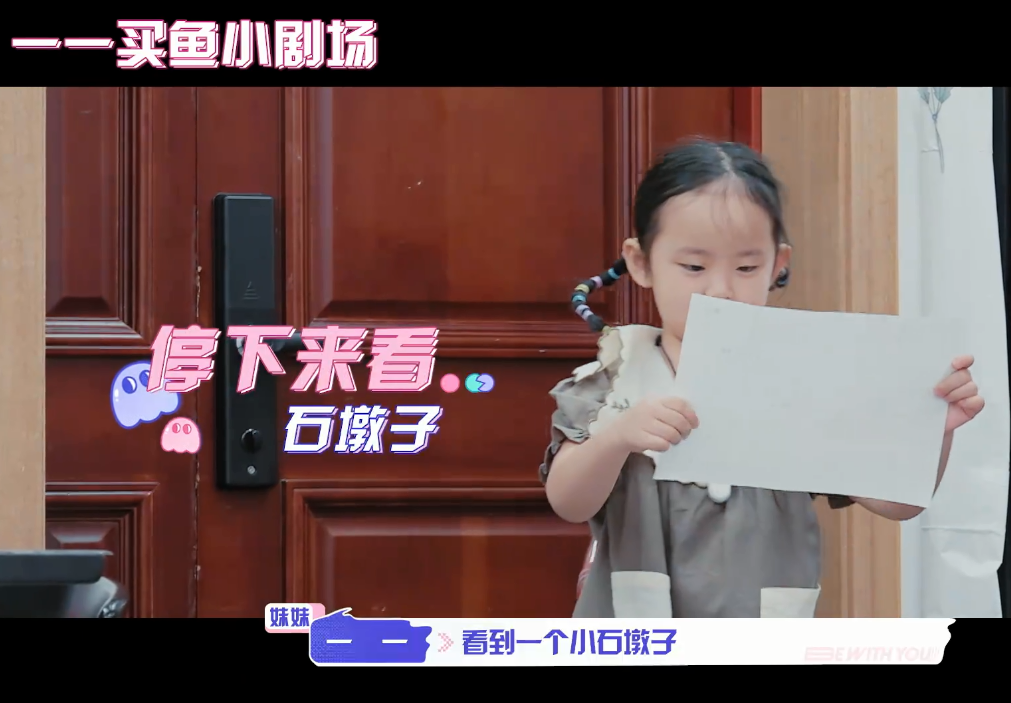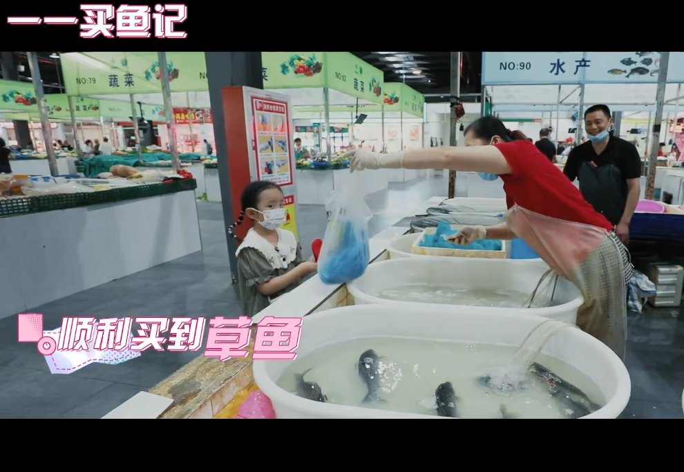 他和妹妹的互动话题任务就是协助一一去买一条活的草鱼回来。