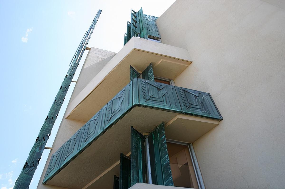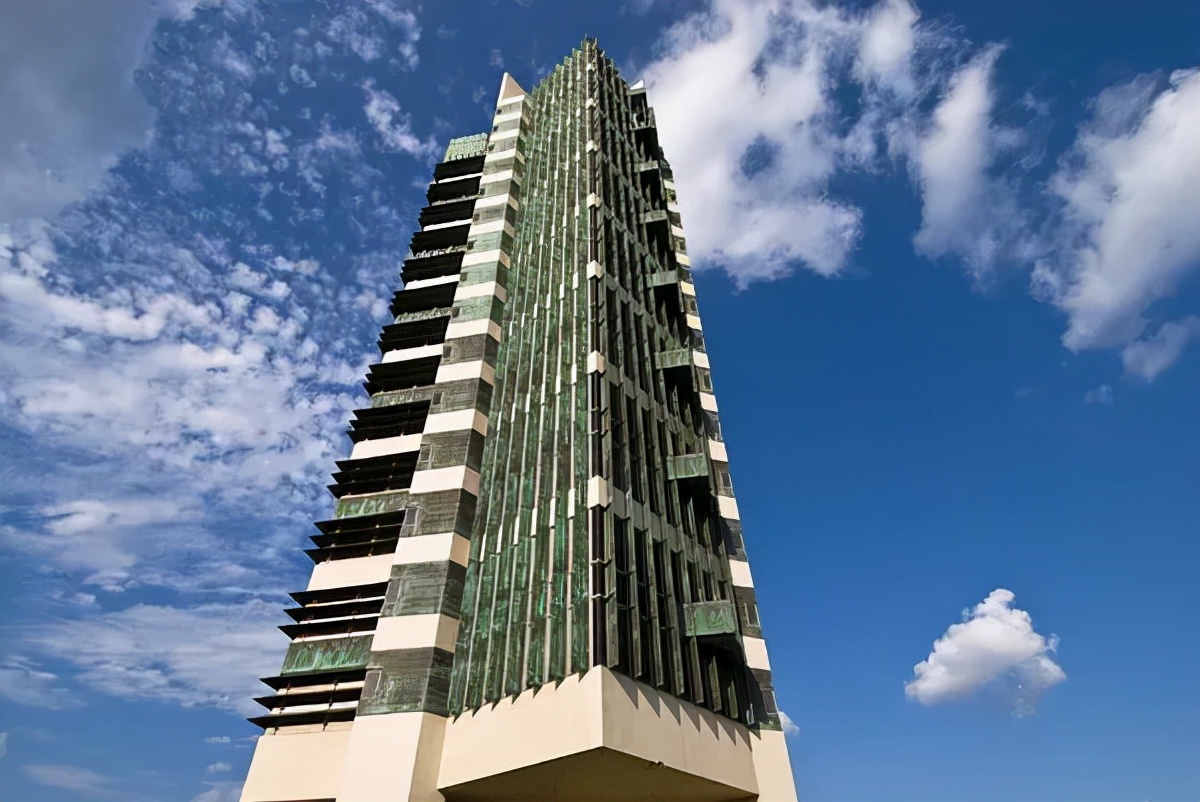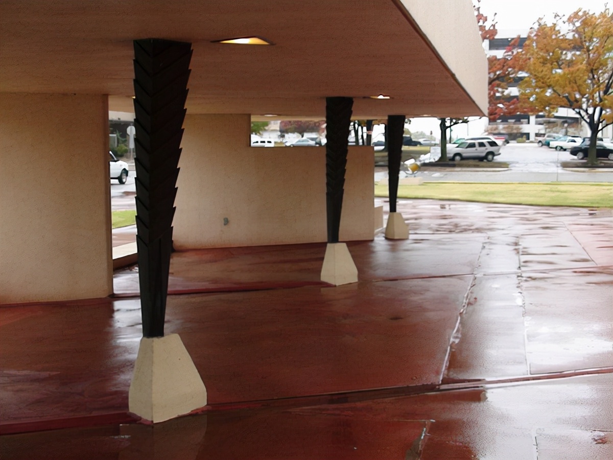 ☉对于20世纪中期的摩天大楼来说,price tower的材料同样具有创新性:浇铸混凝土墙、彩色混凝土地板、铝制门窗、镀铜浮雕和旧铜板。