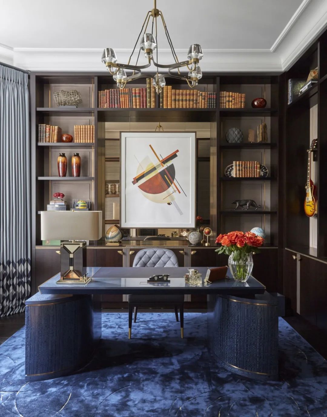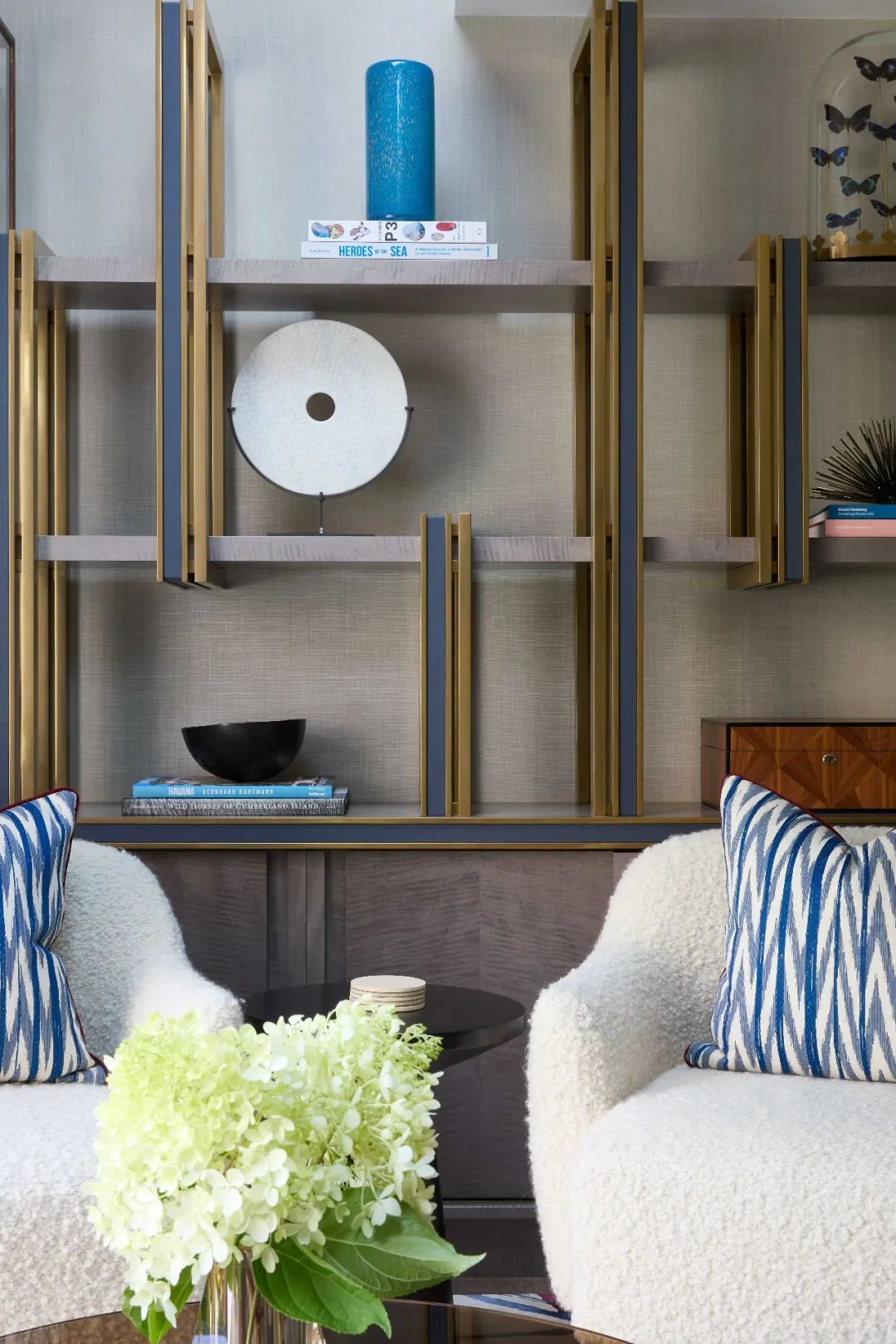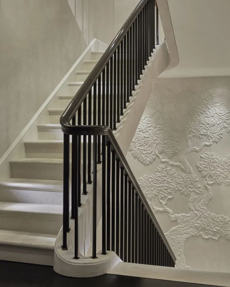 设计师katharine pooley说:“通过和业主的紧密合作,我们设计出极具经典的室内空间,既彰显了经典建筑的对称和谐之美,又引入了出其不意的当代设计元素和不同寻常的奇趣装饰细节。”客户以katharine的审美为指导,将许多博物馆和画廊藏品纳入私人收藏。