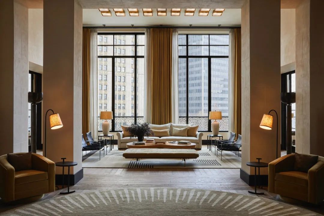 andre mellone参考了附近art deco摩天大楼的设计风格,受到美剧《镀金时代》的启发,将怀旧感十足的姜黄色和奶白色,同黑色色调在空间内进行重叠搭配,以20世纪中叶的现代主义美学为主题,简化形式,以硬朗的线条同纯粹的空间感形成对比。经典与现代交融,格调十足。前卫色彩与怀旧家具碰撞,形成了独特格调的现代装饰风格空间。