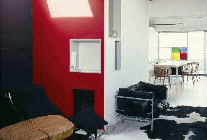 这间公寓取名为24 n.c.,可以说是建筑师自己的现代主义试验场。公寓的亮点之一是玻璃外立面的大胆设计,他选择用玻璃填充地板到天花板之间的空间,这一创新在当时开创了第一。客厅用红色墙壁做隔板,并将休息区与其他生活区隔开,起到一定的空间延伸效果。柯布西耶设计了家里的大多数家具,还有一些出自他的好友charlotte perriand和堂兄pierre jeanneret之手,这两位同样是现代主义文化先锋运动的重要活跃设计师。