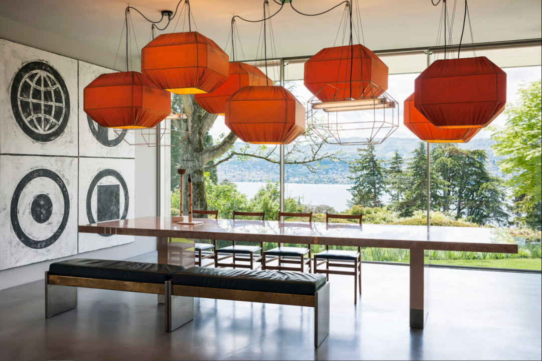 走进这所山间别墅,画廊般陈列的走廊,犹如一个透明玻璃盒子般的客厅,视野完全不受打扰。敞亮干净的空间下,简洁清晰的线条元素随处可见。客厅中心,一对 gio ponti 的 parco dei principi 扶手椅,它的两侧是 dimore studio 定制的黄铜长凳,以怀旧的物件和颜色来打破空间的单调性。