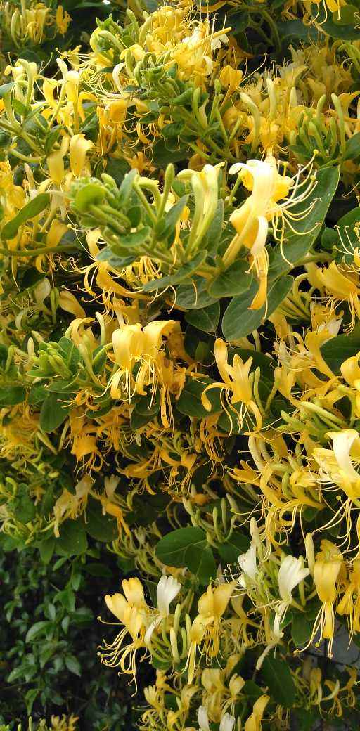金银花开花初期为白色,后期慢慢变成黄色,顾名思义:金银花,金银花属于灌木植物,相比于其他种类的植物来说,它是比较好养活的,很适合放在花园里,阳台也是可以的,并不占地方。