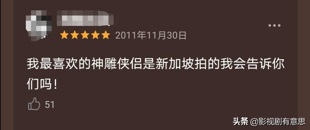 这两版经典的电视剧征服了很多人。2000年《笑傲江湖》的两位主演:马景涛、范文芳为大陆观众所熟知,其精湛的演技更是令他们拥趸无数;1998年的《神雕侠侣》也不容小觑,甚至有大陆网友表示,最喜欢的一版《神雕侠侣》来自新加坡,其制作水平之精良可见一斑。