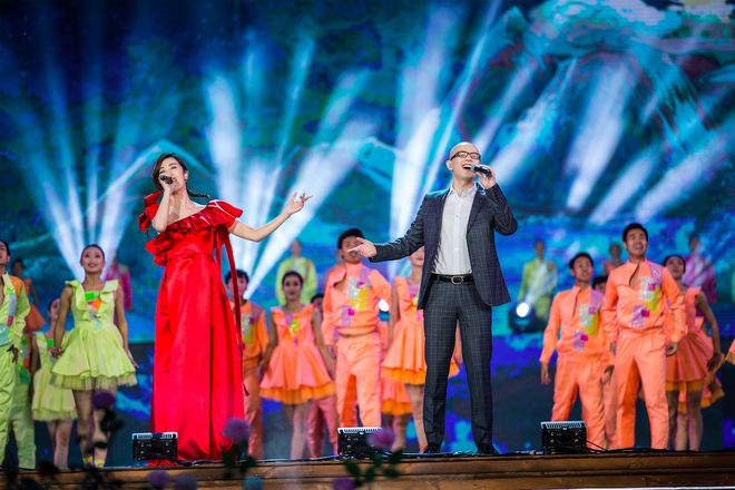 钟镇涛这次是和毛晓彤一起演唱歌曲,毛晓彤属于跨界,曾担任温拿乐队主唱的钟镇涛则是实力唱将。他在接受采访时大赞西昌的空气好、绿化好,这边的空气和城市都很不一样。谈到这次的演出,他大赞舞台的舞美设计超级棒。