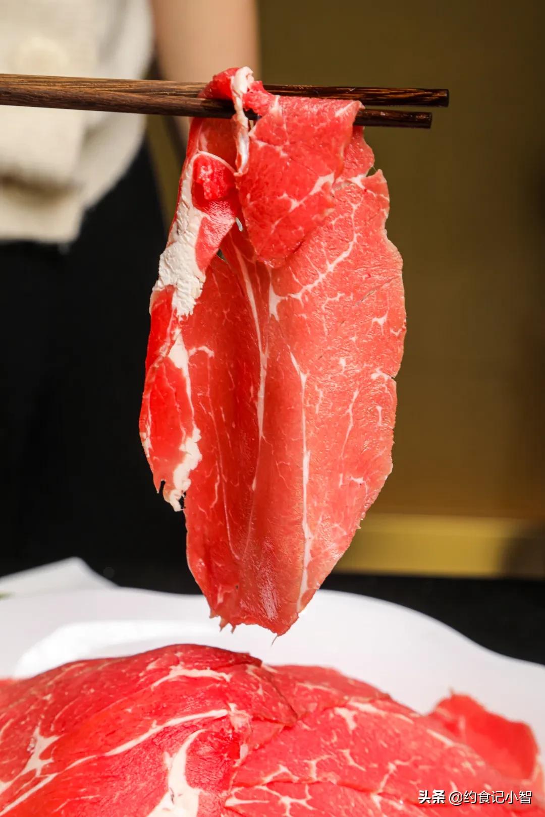 每一片肥牛肥瘦相间、纹理清晰