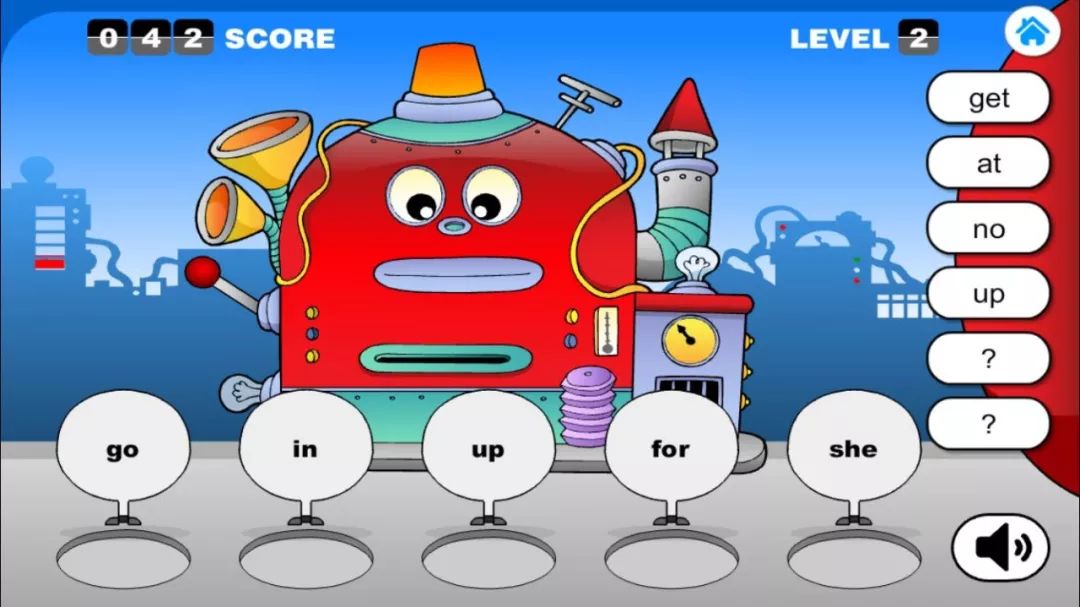 有word machine、 gears、 bingo、memory games、spelling、flash cards等六个版块,以各种不同的形式,帮助孩子学习常见词的发音、拼写和听读能力。