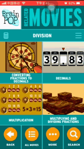 比如数学,以3分钟段视频的形式,帮助孩子理解加减乘除等概念。而且每段视频后还会有即时提问,帮助巩固所学到的知识。