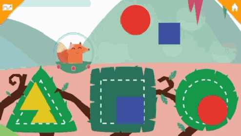 一只坐在气泡里的小狐狸,带着孩子学形状的app。