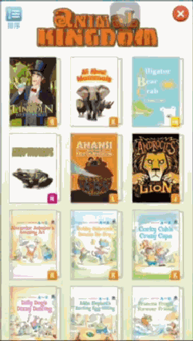 比如选择animal kingdom后,就可以从上本书中,选择一本下载来读了。可以设置成app播放,或是自己读。