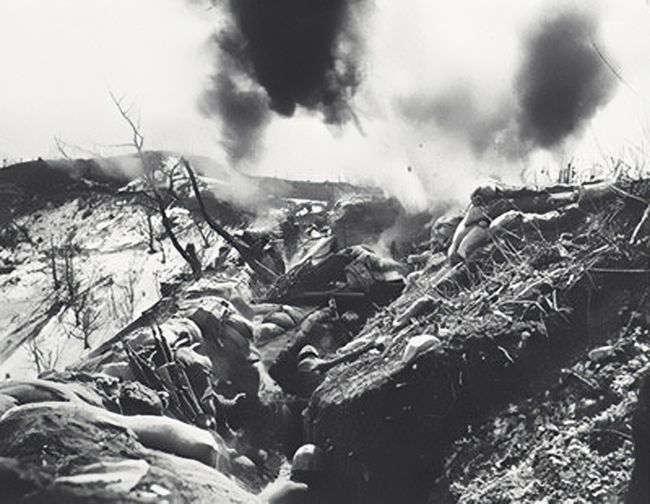 布置妥当后,美国骑兵第一师便汹汹而来。像之前一样,美军在进攻前,先将8连的阵地狂轰滥炸的一通。在凝固汽油弹和重磅炮弹的轰击下,8连的阵地很快就化为焦土。然而郭恩志指挥得当,提前预备的防御工事也起到了作用,因此伤亡很少。