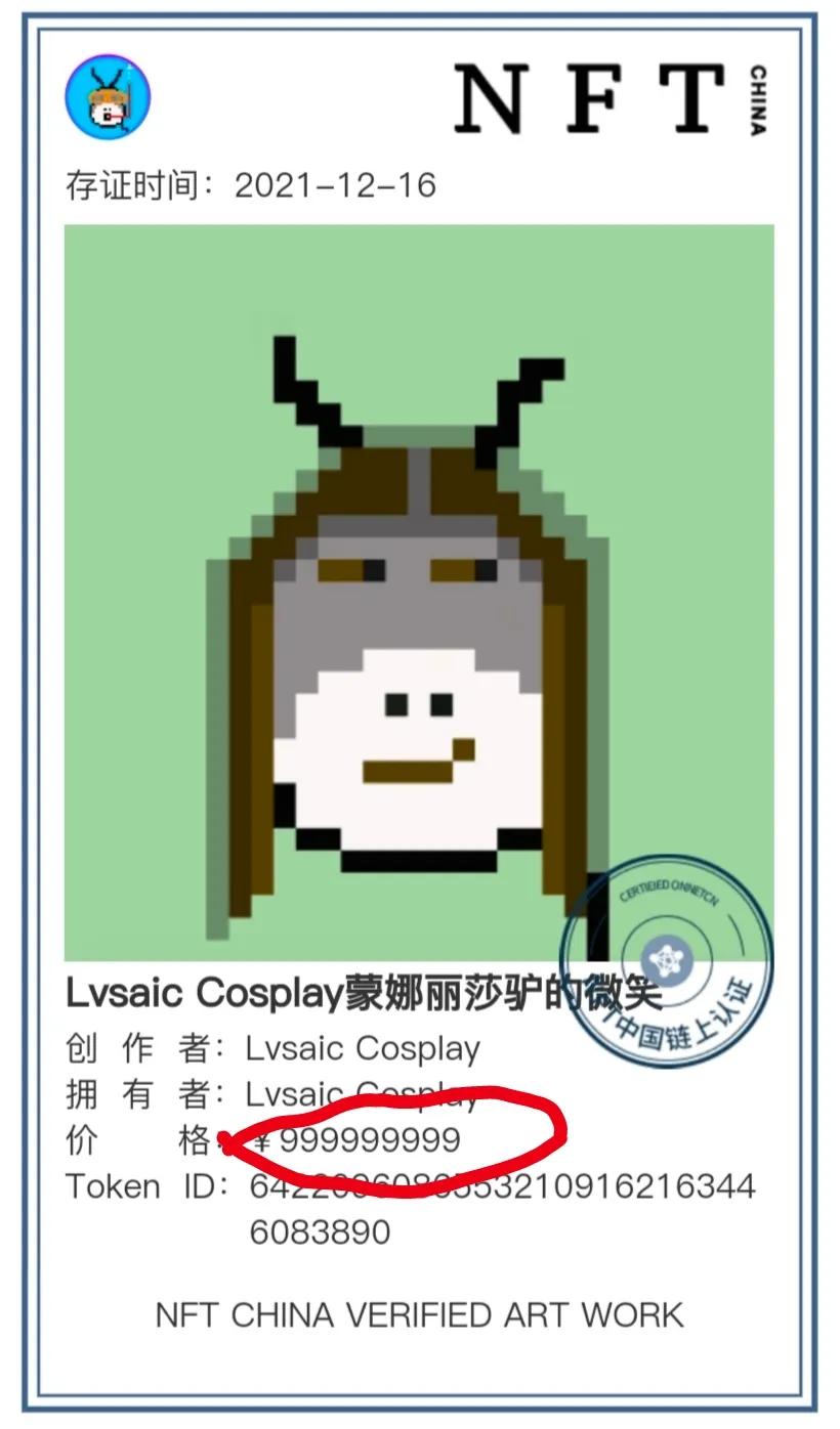 创作者们蜂拥而至,希望展示自己的作品,其中nft中国艺术品交易平台账号名:lvsaic cosplay的作者挂出了售价为9.99999999亿全平台最高价的作品。