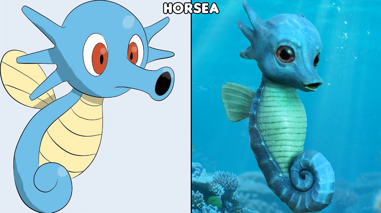 墨海马属于龙宝可梦,遇到危险会喷吐墨汁逃跑。来到现实世界后,墨海马有了一张外星人脸。