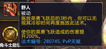 因为战士在pvp天赋中有一个天赋名为“野人”。野人的效果可以让战士在释放了大跳后,3s内再次释放。而在新版本里,这个天赋可以和大跳的橙装效果配合起来,直接达成瞬间大跳6次!