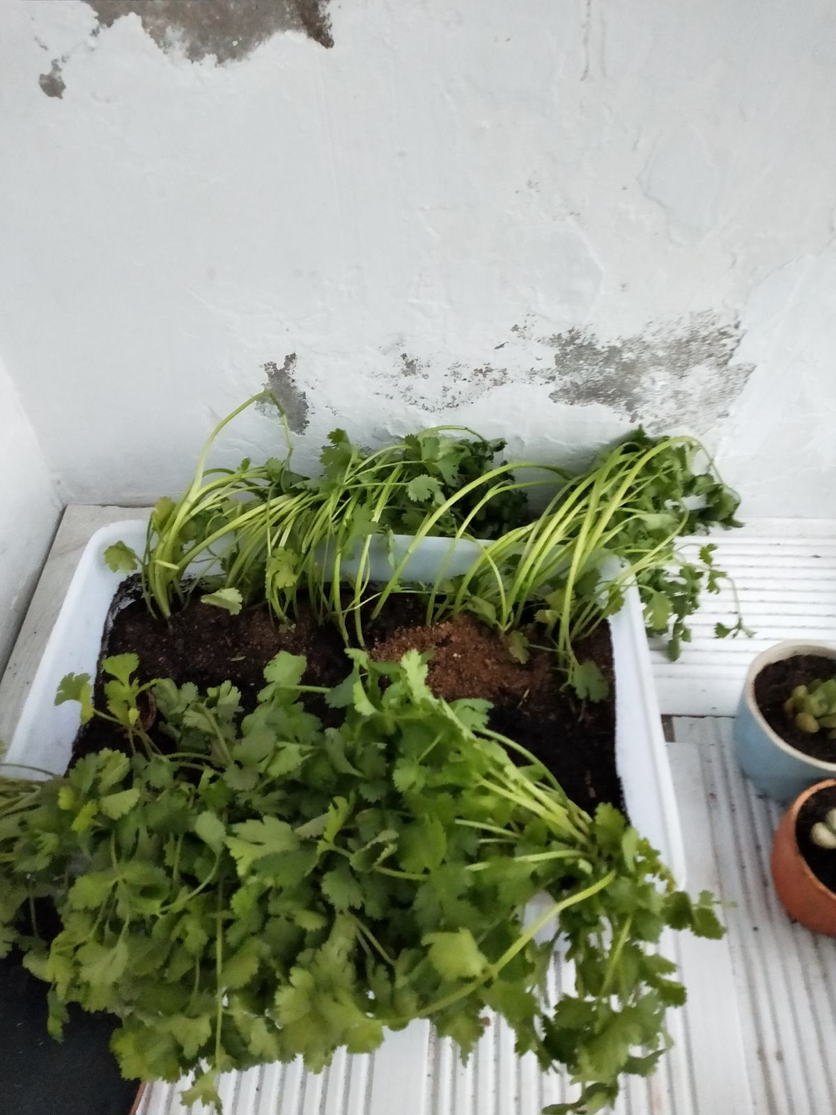 朋友的婆婆家就在家种了一泡沫箱香菜,不到半个月的时间,香菜都长出来了,用来做作料,炒菜,下火锅再适合不过了。