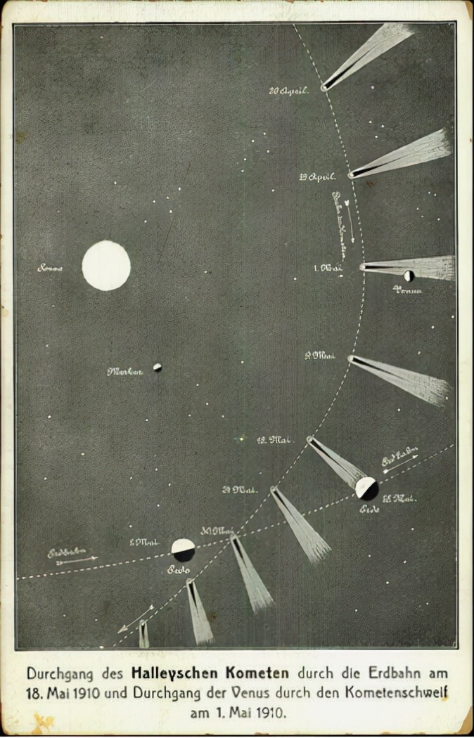 图7:1910年德国出版的哈雷彗星回归明信片,图片来源:wikipedia