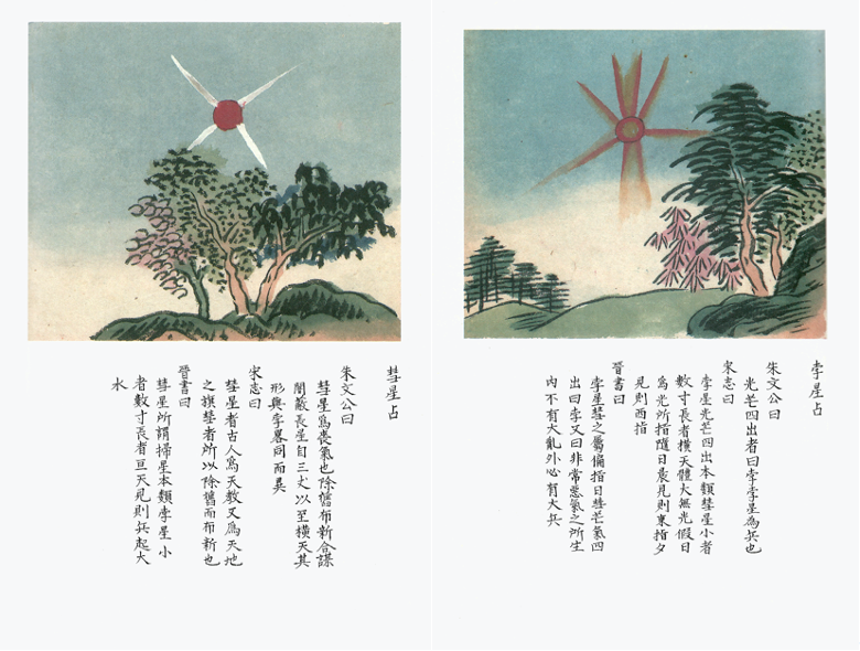 在中国古代文献中,彗星往往被记为“彗”或者“孛(读作bèi)”。例如《天元玉历祥异赋》中,对于彗星的占辞是“彗星,为丧气也”,而对于孛星,则记载“光芒四出者曰孛。孛星,为兵也”。