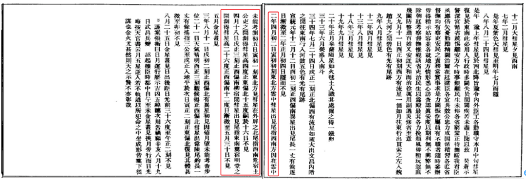 要了解这个规律,光靠我们一代人的观测显然是不够的,毕竟我们一个人从出生到去世,最多也只能看到两次哈雷彗星的回归罢了。在中国古代文献中,关于彗星的记载异常丰富,1911年以前的彗星记录不少于2583次,总条目万余条,其中有些记录还对彗星的位置、方向、形态、日期等进行了周全的描述。