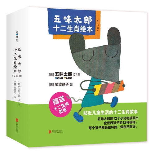 “五味太郎十二生肖绘本”系列包括《小老鼠咔嚓咔嚓》《哞!准备好了》《小老虎,了不起》《兔子就是兔子》《小龙,你在做什么?》《小蛇有魅力》《放心吧小羊》《懂了,小猴子!》《在哪儿呢?叽叽叽……》《汪汪,元气满满》《小猪拼命跑》共12册,是分别以十二生肖中的动物为主角创作的故事。