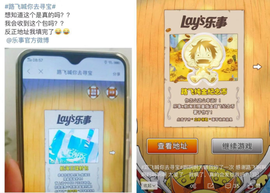 「路飞喊你去寻宝」为期短短3天,进入人次超千万量级。#路飞喊你去寻宝#微博话题阅读量破3.3亿。三个品牌突破次元壁发挥各自优势,精准选择航海王20周年的时间点,打造了一个充满乐趣的ar游戏,三方联手解锁了ip合作的新玩法。