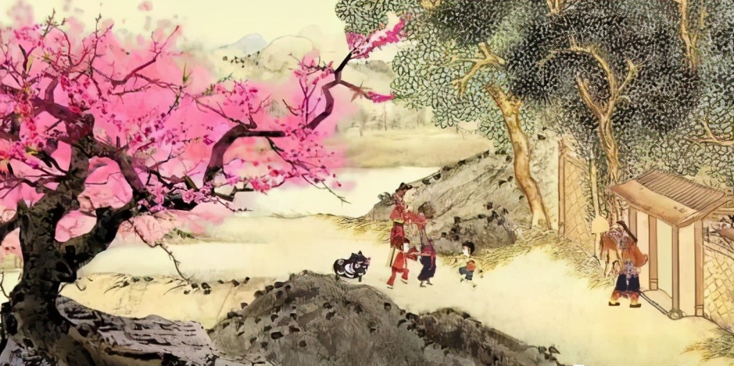 桃树自古也有深层的意义,在奇书《山海经》里写道“夸父死后化为邓林”,邓林也就是桃林。大家都知道,陶渊明独爱菊花,而这里又机缘巧合写的是桃花,这个古代的大文人不可能不知道,桃花四月初飘落,不正是清明节前后么?