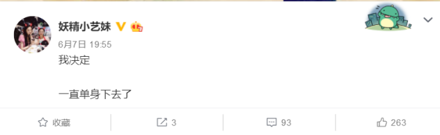 ?但随后在六月份则在某社交平台表示:“一直单身下去。”目前张兆艺表示自己处于单身状态。