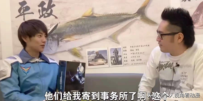 这二人既然坐到了一起,除了要讲一讲当年的故事,回顾一下当年的感情之外,晒一晒自己和奥特曼有关的东西也是必然的了。只不过在这件事上,龙就只有吃柠檬了。因为人家武藏毕竟是《高斯奥特曼》的主角,而龙则是在《梦比优斯》tv最后才成功变身希卡利,所以这待遇自然就是天壤之别啊!人家武藏可是拥有自己的队服的,虽然说原本拍戏使用的衣服被圆谷收藏,但万代推出的复刻版,可是第一时间就送到了武藏的手上,这让龙非常羡慕,还试穿了一下,这里也为武藏点赞,身材保持的真好,穿上制服,风采不减当年啊!