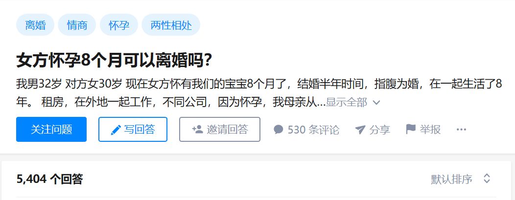 之前在知乎上看到过一个热度很高的帖子:“女方怀孕8个月可以离婚吗”?