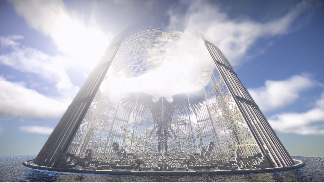 这个笼状的华丽地方是某位伟大的天使巡视人间的地方,我们通过圣光只能看到他的一个大概形态,以及周围那精美的雕花。