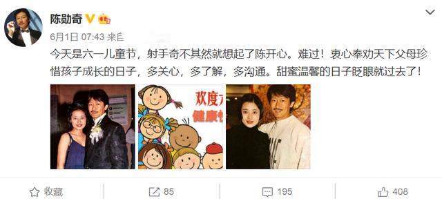 每年的六一儿童节,陈勋奇总是会发文缅怀女儿。