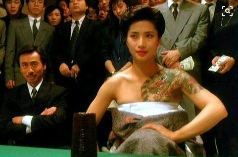 1989年,西协美智子参演了由王晶执导,周润发、刘德华、王祖贤等主演的《赌神》,饰演龙刺身女“菊子小姐”。她霸气的出场,裸露的纹身,飒爽的摇骰动作,都令观众记忆深刻。