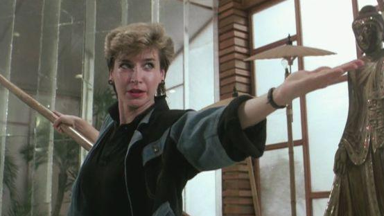 说到香港电影的“外来功夫妹”,大岛由加利无疑是最具影响力的一个。1963年出生的大岛由加利比杨紫琼只小一岁,她大学时专修体育,1980年代中期只身前往台湾当起了动作演员。据说,她的身体条件允许她大于180度的腿扩展,回旋踢更是可以扩展到头部或颈部。
