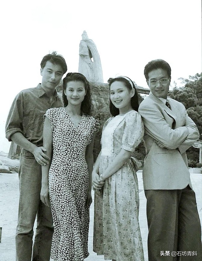 1992年至1993拍摄电视剧《厦门新娘》在外景地时,左起:林炜、黎燕珊、蔡佳虹、鲁振顺