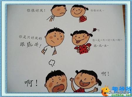 我有一个妹妹,妹妹是个小跟屁虫。我说,“蹦”,跳了起来。妹妹也说,“蹦”,可她根本跳不起来,妹妹是个跟屁虫。我说,“再来一碗。”我把空碗递给妈妈,妹妹也说,“再来一碗。”可她的碗里还是满满的呢,妹妹是个跟屁虫。