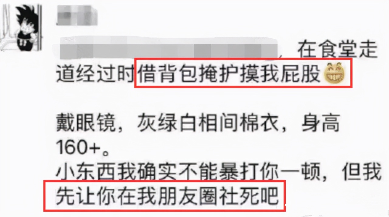 但此时男生已经真的如学姐所愿般“社死”,不管在校内还是网上都有人追着他骂“猥亵的小东西”。
