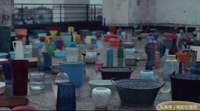 为了获得水,他在天台上摆满了盆盆罐罐,赶上下雨天可以接水。